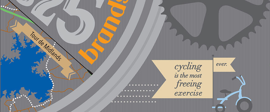 Hawley, LLC is a nationwide wholesaler of bicycle parts and accessories located in Lexington, SC. Their yearly catalog consists of 750 pages of the company's new and existing products for the year. This cover design uses infographic-style typography and creative elements to portray data from Hawley's history, staff, and products.